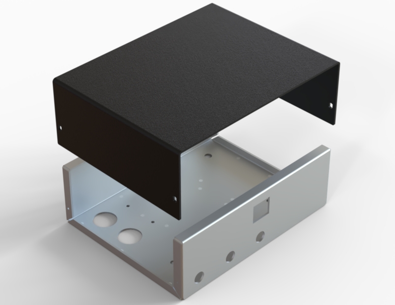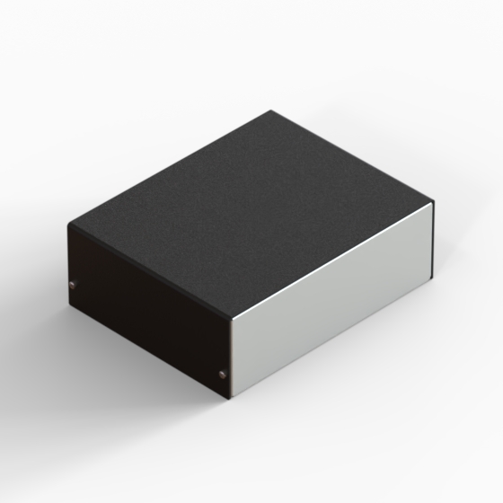 Aluminium enclosures with silver metalised base and black cover. Simple and speedy to assemble, with four screws to put in place.