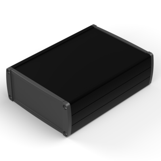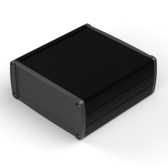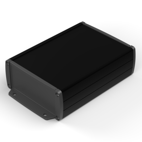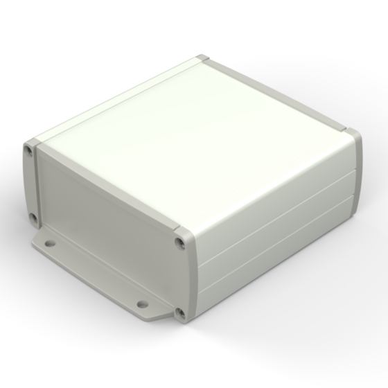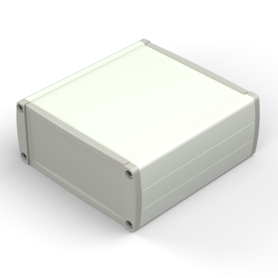 Extruded aluminium cases with high quality painted finishing. Two ABS front panels, internal slots for PCB’s and a recessed area for a keypad membrane. Six standard models are available with different sizes. The models with “-E” have mounting wall panels. Closing by eight screws