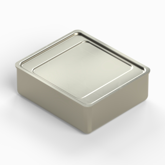 Electrolythic tin-plated steel enclosures for High/Frequency electronic components assembly with a cover that can be soldered on for hermetic sealing. Volume of casing is suitable for easy assembly of professional and High-Technology circuits.