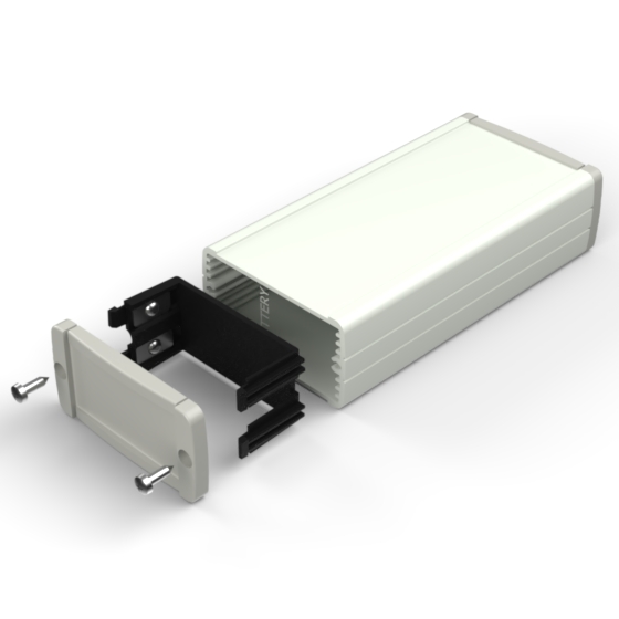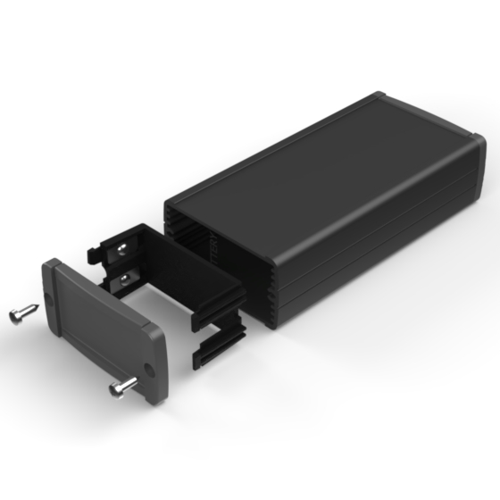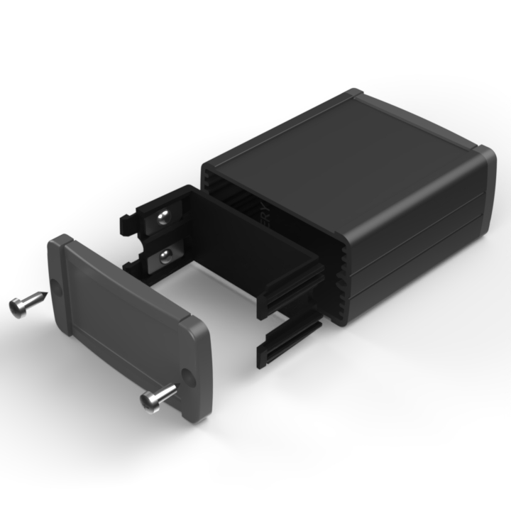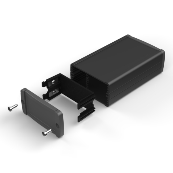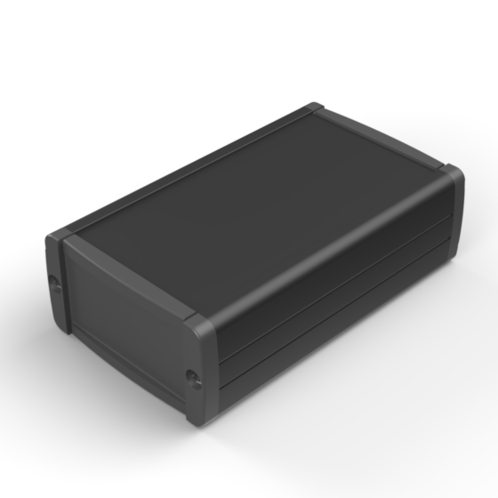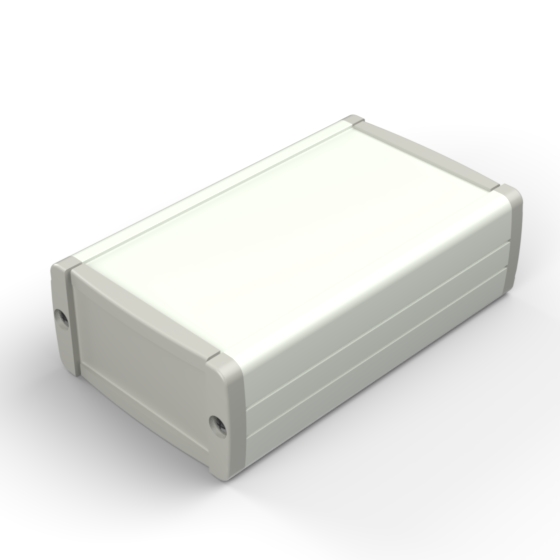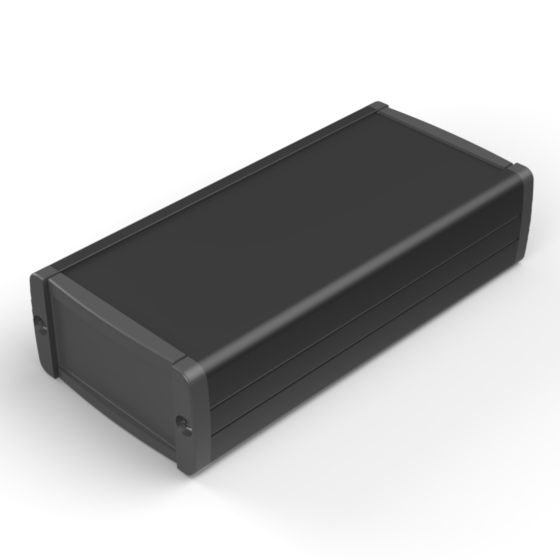 Boîtier en aluminium extrudé avec une haute qualité du finissage extérieur. Deux couvercles en ABS, guides internes pour circuit imprimé et partie supérieure avec décrochement pour clavier à membrane. Les modèles référencés «-B» ont un logement pour deux piles à 1,5V (AA) ou une pile à 9V (PP3). Douze modèles à disposition avec dimensions différentes. Montage par quatre vis.