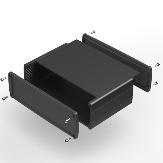Boîtiers en aluminium extrudé avec une haute qualité du finissage extérieur. Couvercle supérieur à glissière toujours en aluminium. Deux couvercles en ABS, guides internes pour PCB. Les modèles référencés «-H» ont un poignée ergonomique réglable à huit positions. Deux longueurs différentes à disposition. Montage par huit vis.