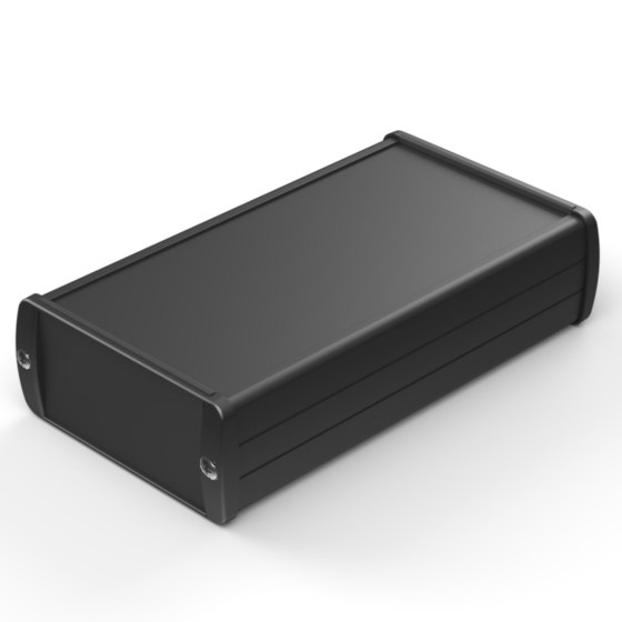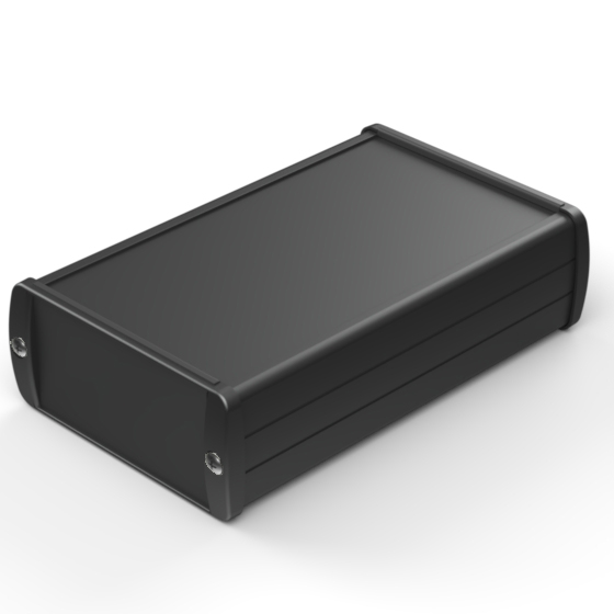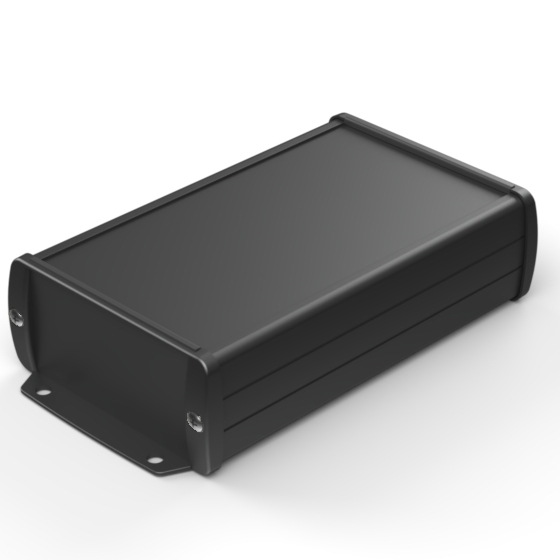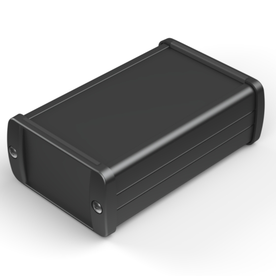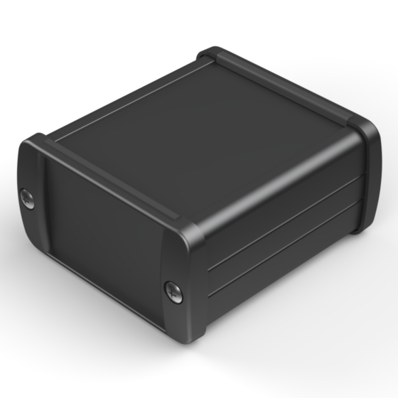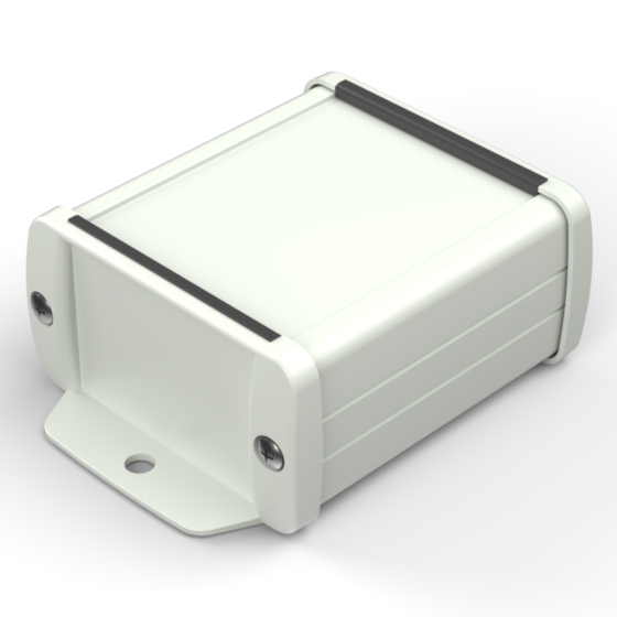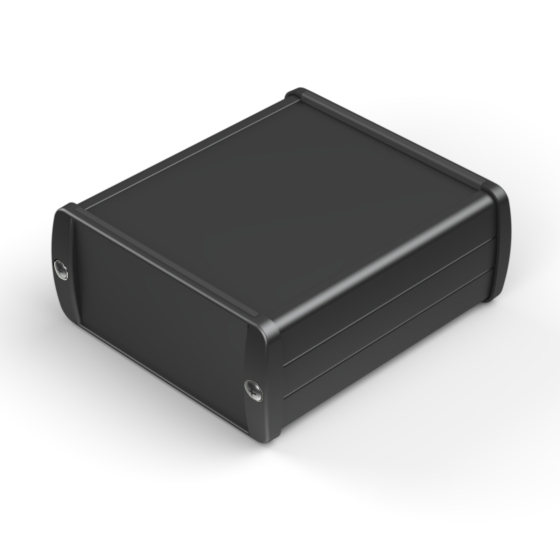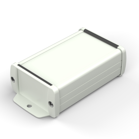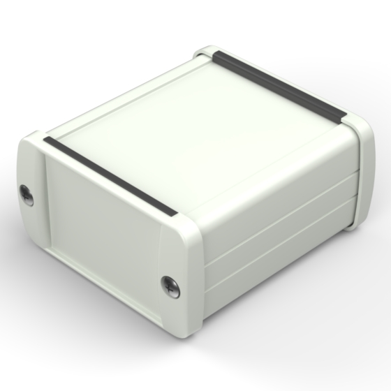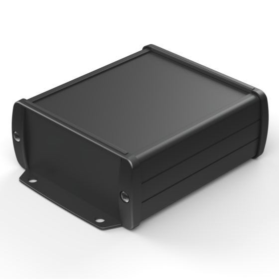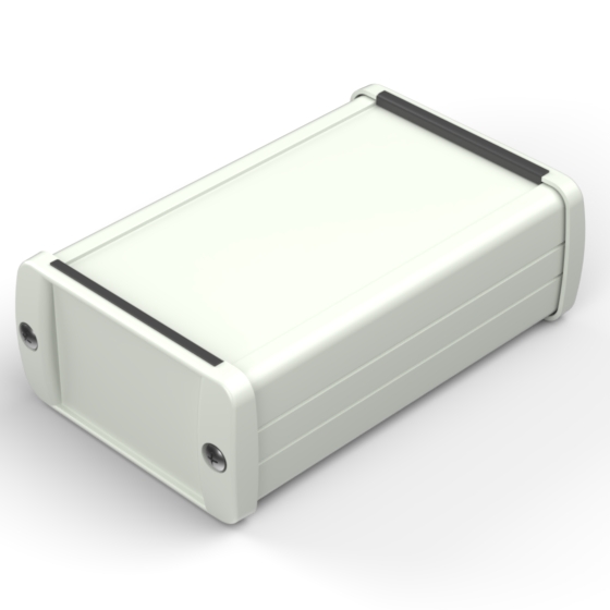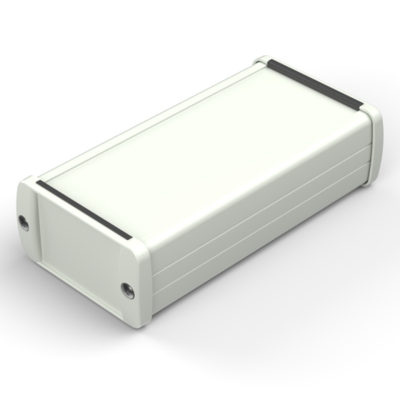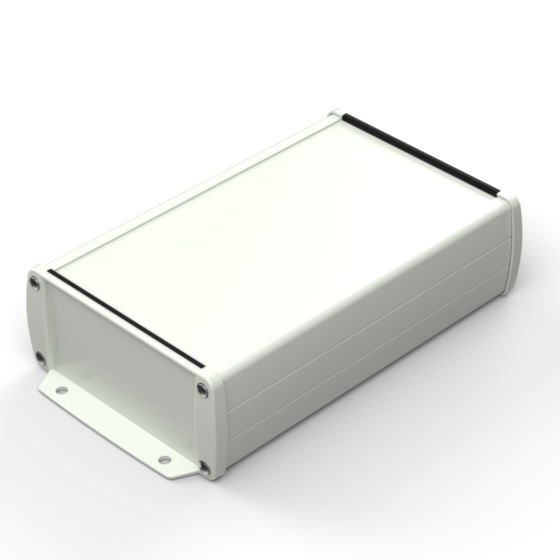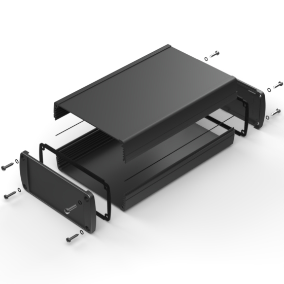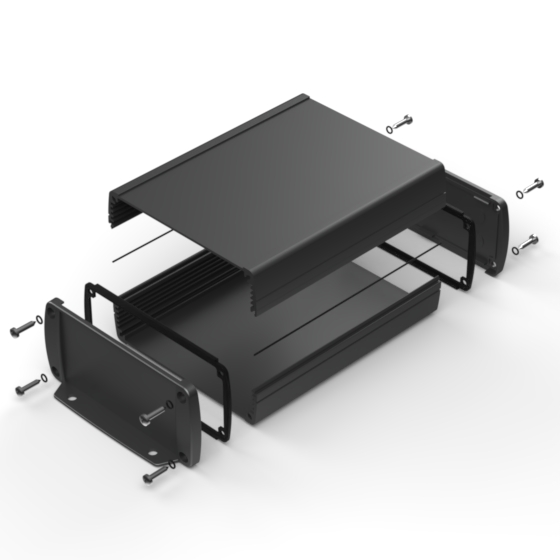 Boîtiers en aluminium extrudé avec revêtement par poudre d’haute qualité, deux couvercles en aluminium munis de jeu de joint pour protection contre l’eau et la poudre (IP65) disponibles an six couleurs différentes, guides internes pour PCB et partie supérieure avec décrochement pur clavier à membrane. Les modèles référencées «-E» sont prévus pour fixation murale. Montage par quatre ou par huit vis.